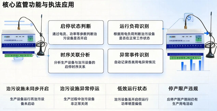 一是启停状态判断,通过电流、功率等参数判断治污设备是否开启;