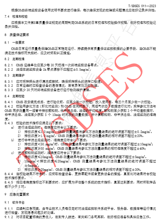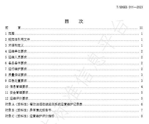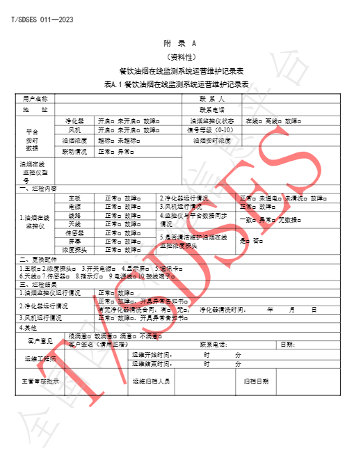 《餐饮油烟在线监测系统运营维护规范》(T/SDSES 011-2023)