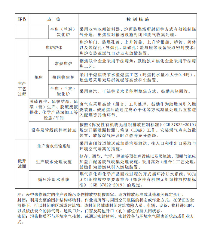 焦化行业备煤、炼焦、熄焦、焦处理、煤气净化、化学产品深加工等生产环节,以及物料产品运输实施超低排放改造,大气污染物有组织排放、无组织排放、运输过程总体满足《关于推进实施钢铁行业超低排放的意见》中焦化工序指标要求,还应满足的具体要求如下。