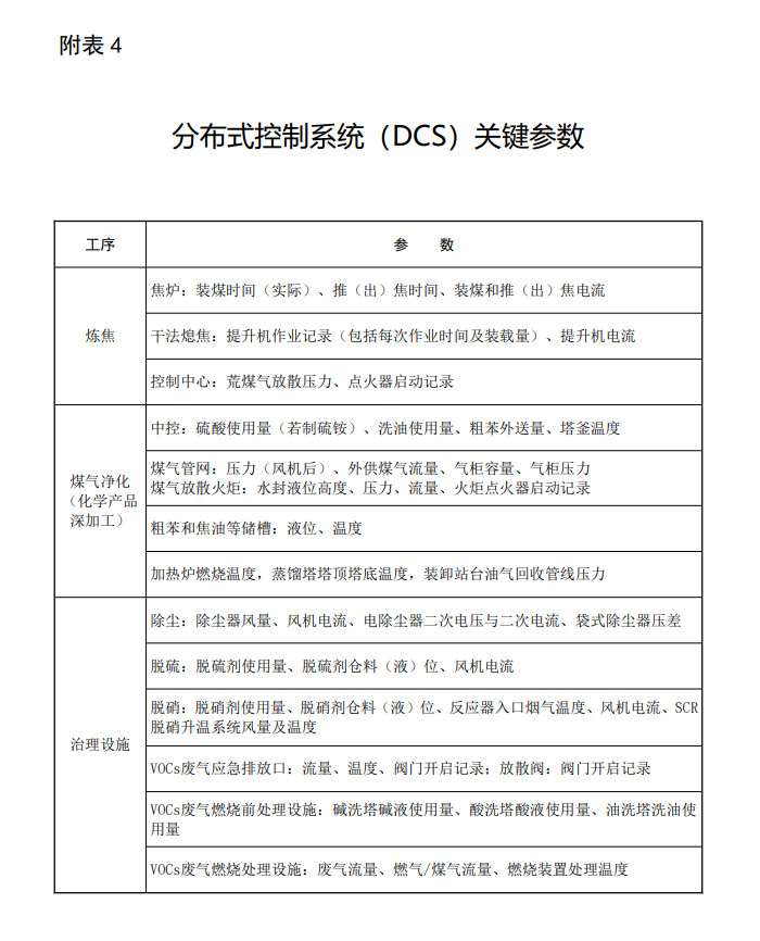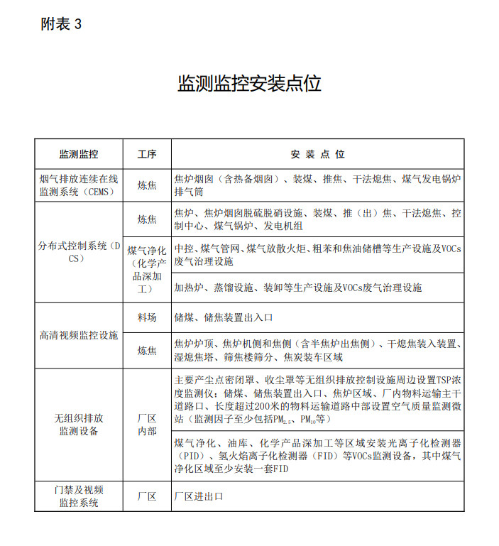实施超低排放改造的企业,可通过加强污染物排放自动监测、过程监控和视频监控设施建设等方式自证稳定达到超低排放要求,包括以下措施。主要排放口安装自动监控设施,焦炉烟囱(含热备烟囱)增加非甲烷总烃和氨排放自动监测。在煤气净化、油库、化学产品深加工等区域安装VOCs监测设备。主要生产装备和污染治理设施安装分布式控制系统(DCS),重点工序安装高清视频监控设施,关键点位布设空气质量监测微站。建设全厂一体化环境管控平台,记录有组织排放、无组织排放相关监测监控和治理设施运行情况,以及清洁运输情况。自动监测、DCS系统等数据至少保存五年以上,高清视频监控数据至少保存六个月以上(具体要求见附表3、4)。