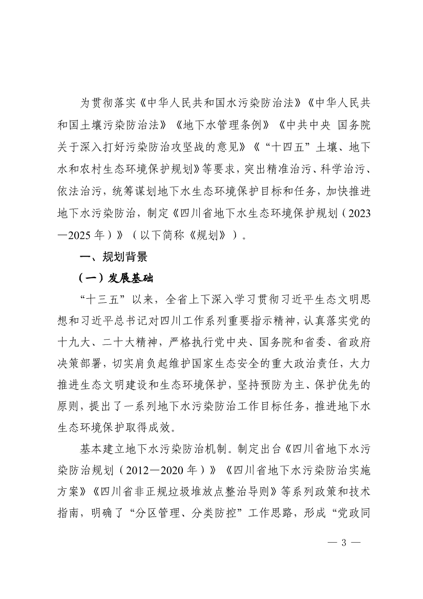 关于印发《四川省地下水生态环境保护规划(2023—2025年)》的通知