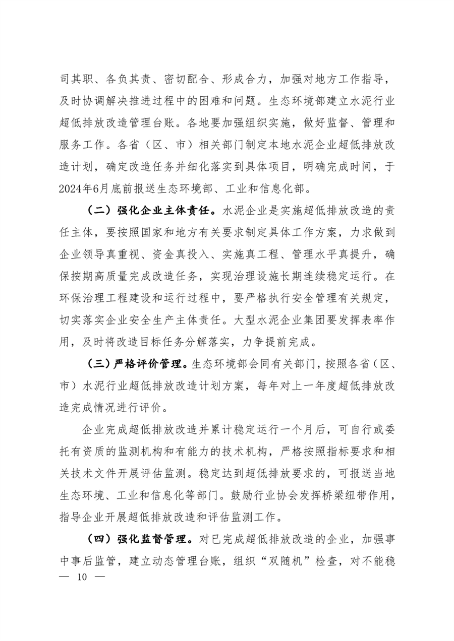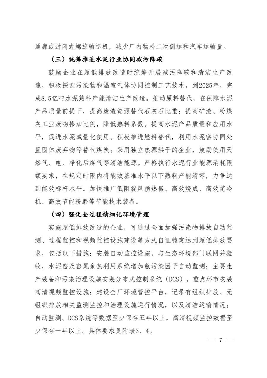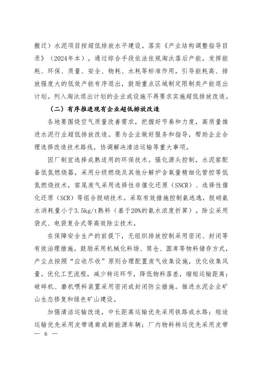 提出四项重点任务。一是优化调整产业结构。严格执行产能置换政策,重点区域严禁新增产能;推进新改扩建项目按超低排放水平建设;依法依规淘汰落后产能,列入淘汰退出计划的企业或设施不再要求实施超低排放改造。二是有序推进现有企业超低排放改造。强化源头控制,采用成熟稳定的污染治理技术。三是统筹推进水泥行业协同减污降碳。鼓励企业在超低排放改造时统筹开展减污降碳和清洁生产改造。四是强化全过程精细化环境管理。全面加强污染物排放自动监测、过程监控和视频监控设施建设,加强企业运行管理、强化运输管理、完善管理制度。