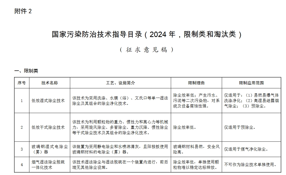国家污染防治技术指导目录(2024年,限制类和淘汰类)(征求意见稿).pdf