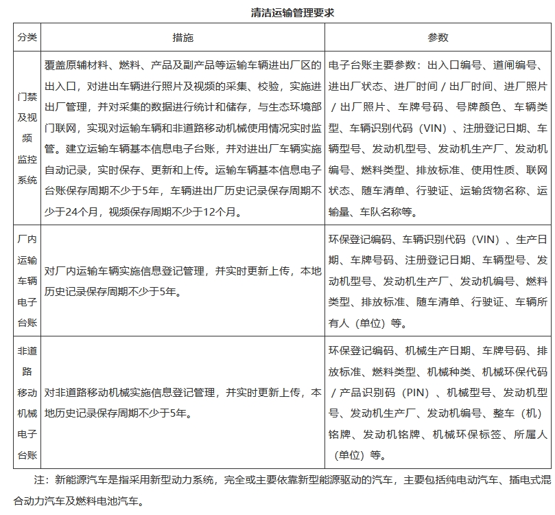配备专职人员加强运输管理,建设门禁及视频监控系统,以及进出厂运输车辆、厂内运输车辆、非道路移动机械电子台账。具体要求详见附件5。鼓励与供车单位、原辅材料供货单位及产品购买单位签订车辆排放达标保证书、增加相应合同条款、提供运输车辆年检合格证明等方式实现车辆合规管理。