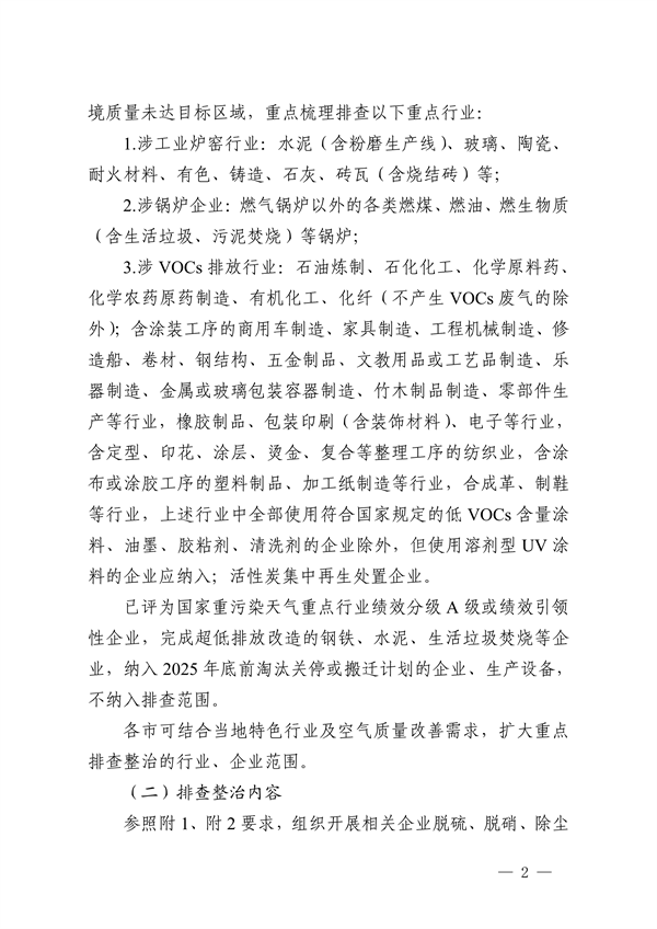 全省域开展排查整治工作,突出各类产业园区(包括开发区、工业园区、工业集聚区等)、涉气产业集群集中地和大气环境质量未达目标区域。