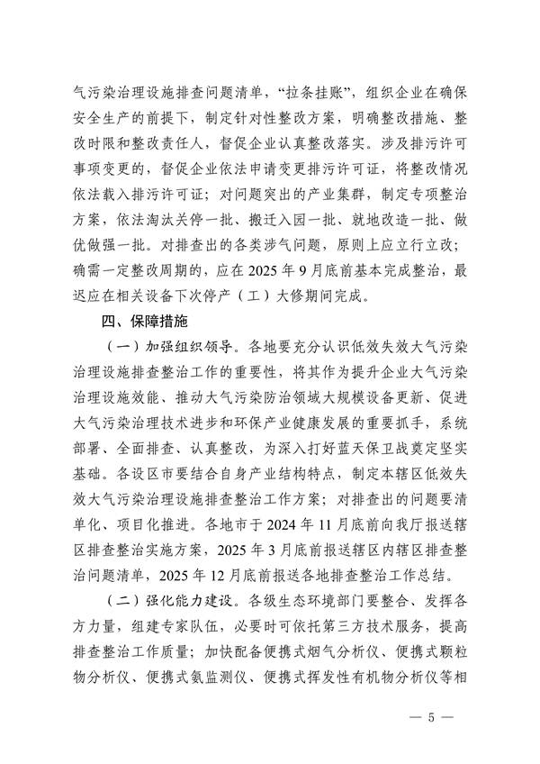 浙江省生态环境厅9月30日发布公开征求《浙江省低效失效大气污染治理设施排查整治实施方案》修改意见的通知,聚焦涉气重点区域、重点行业、重点企业和重点设备,全面开展低效失效大气污染治理设施排查整治工作,实现“更新一批、整治一批、提升一批”,推进企业合理选择治理工艺,提高治理设施建设工程质量,提升治理设施运行维护水平;健全大气污染源监测监控体系,严厉打击监测监控数据弄虚作假行为,提升自动监测和手工监测数据质量;提升各地大气污染治理能力,大力推进多污染物协同减排,助力完成“十四五”大气环境质量目标和氮氧化物(NOx )、挥发性有机物( VOCs)减排任务。