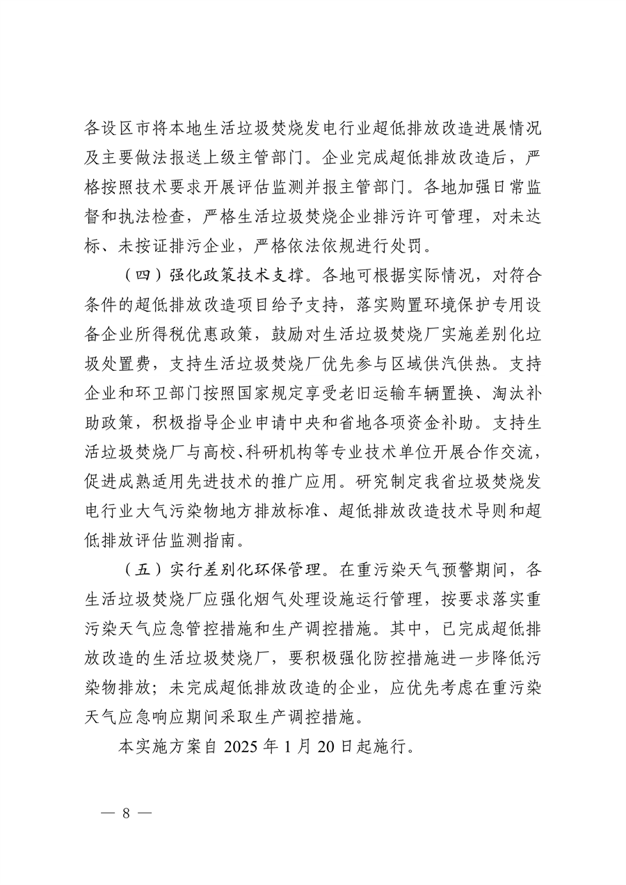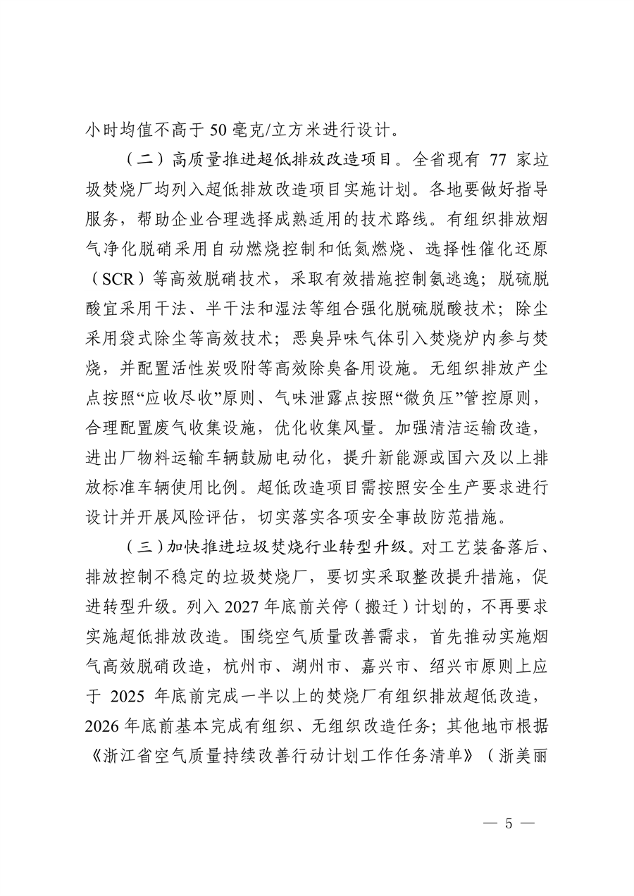 浙江省生态环境厅 浙江省发展和改革委员会 浙江省住房和城乡建设厅12月16日印发《浙江省生活垃圾焚烧厂超低排放改造实施方案》,目标全省新建(含搬迁)生活垃圾焚烧发电项目达到超低排放水平。推动现有生活垃圾焚烧厂超低排放改造,2025年全省有三分之一以上的生活垃圾焚烧厂完成有组织和无组织超低排放改造,2027年底前全省生活垃圾焚烧厂基本完成超低排放改造任务。