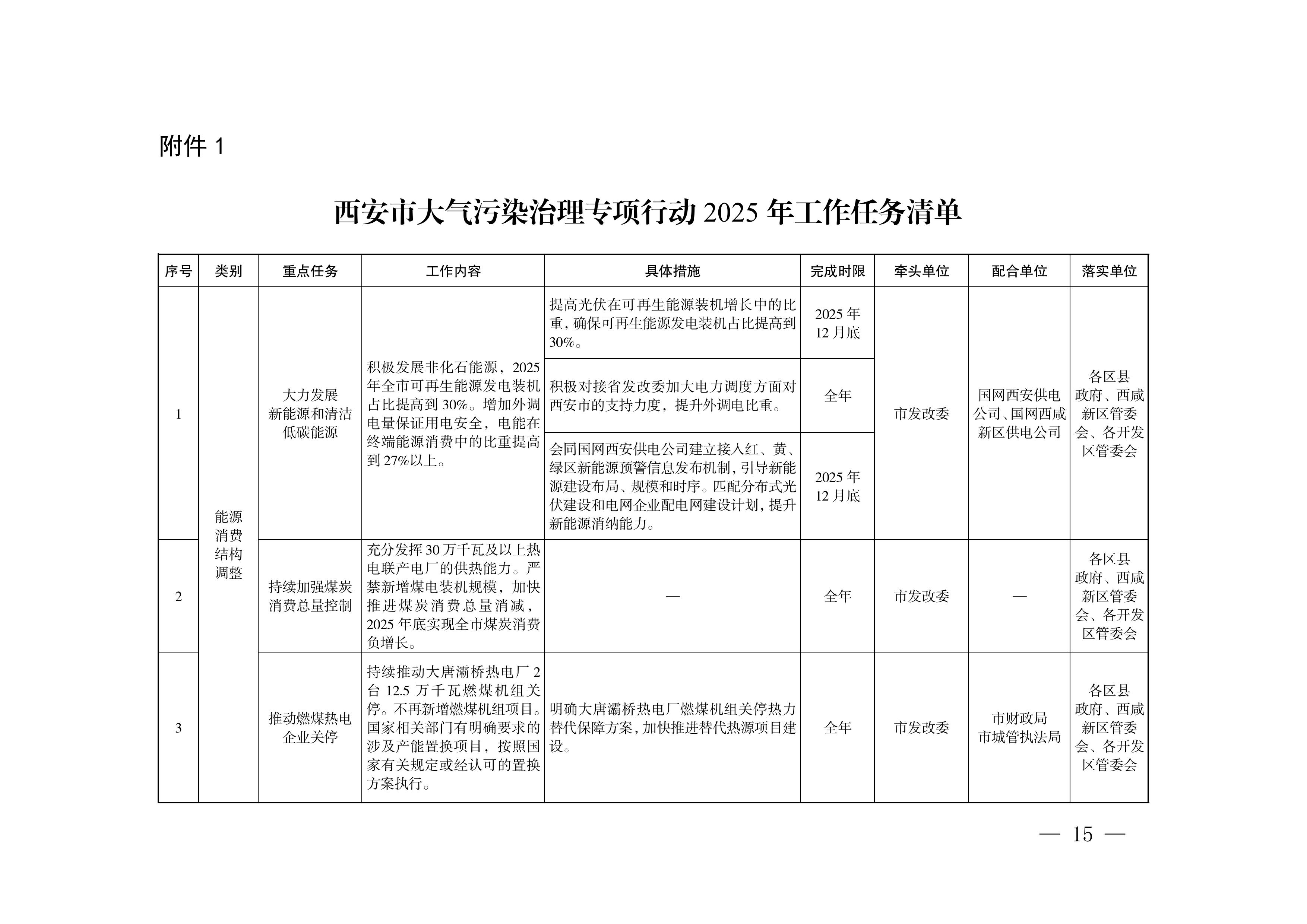 (1)大力发展新能源和清洁低碳能源。(市发改委牵头,国网西安供电公司、国网西咸新区供电公司配合,以下均需各区县政府、西咸新区管委会、各开发区管委会落实,不再列出)