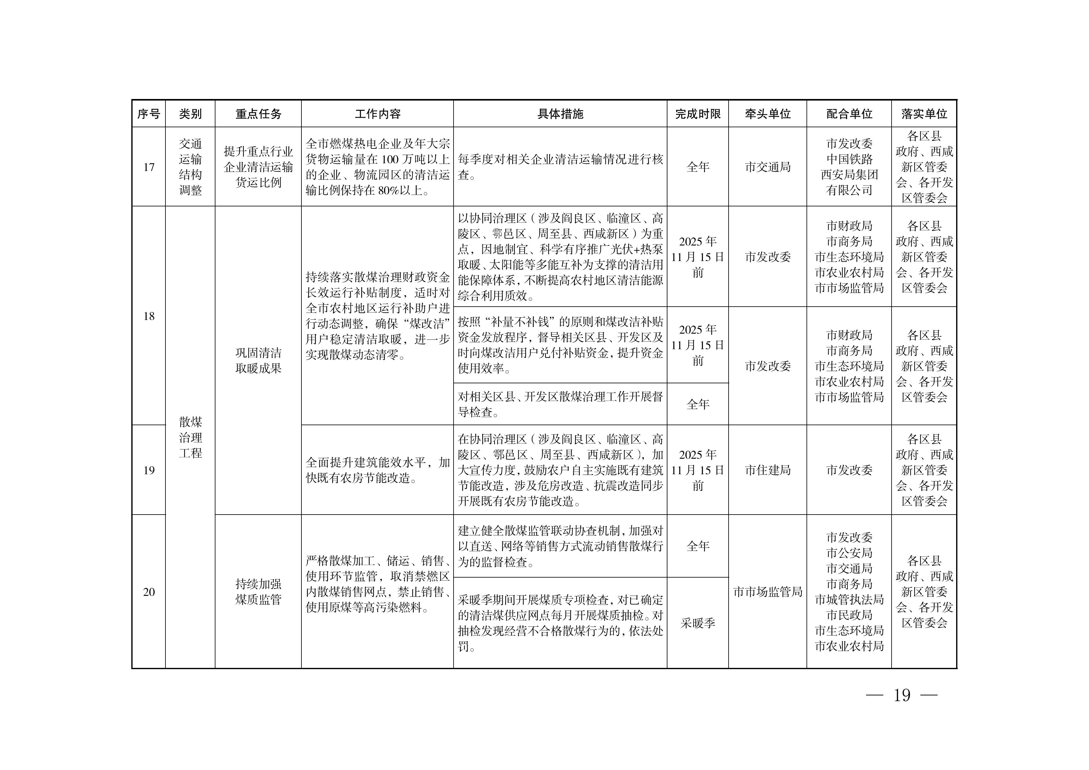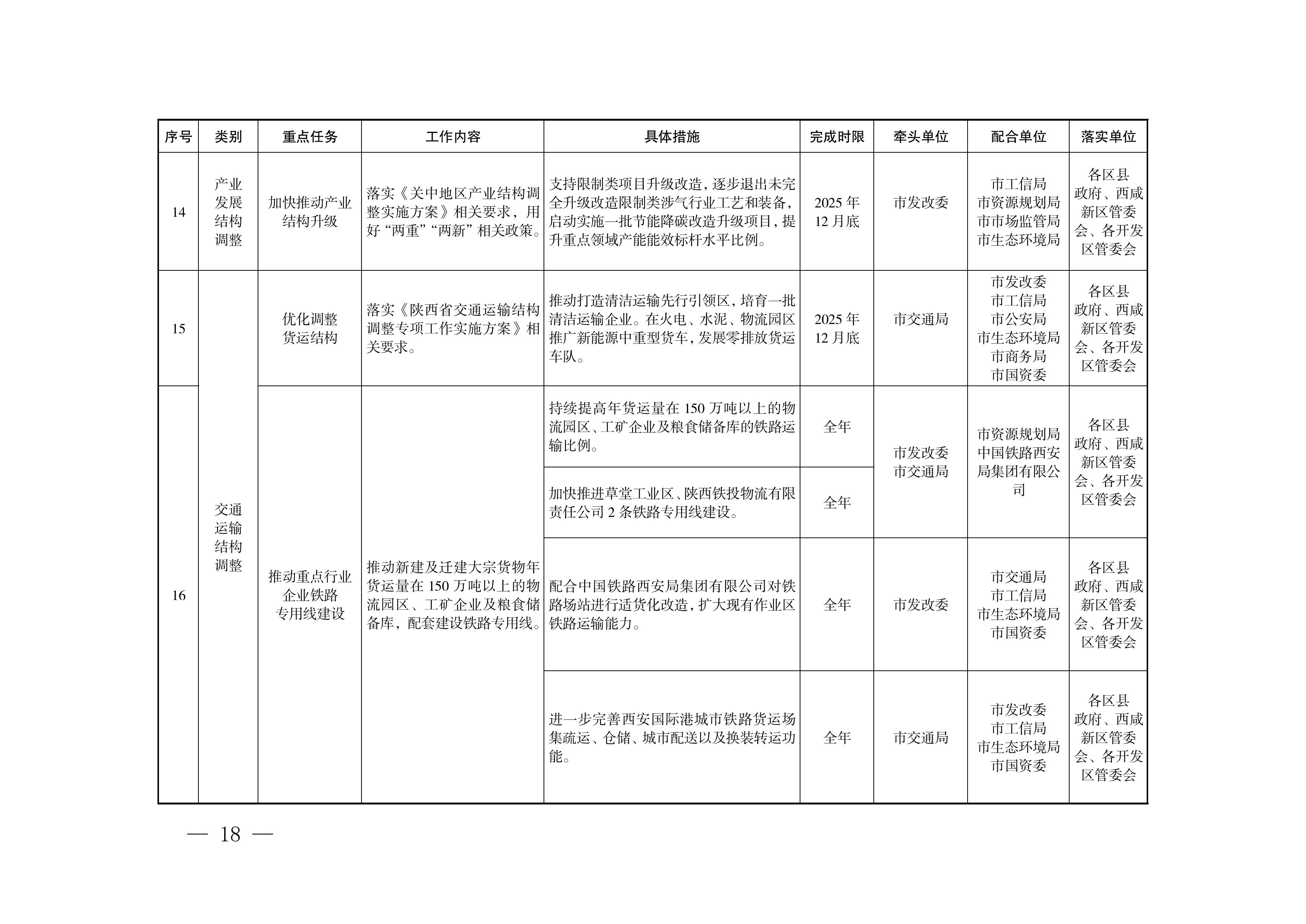 (3)提升重点行业企业清洁运输货运比例。(市交通局牵头,市发改委、中国铁路西安局集团有限公司配合)