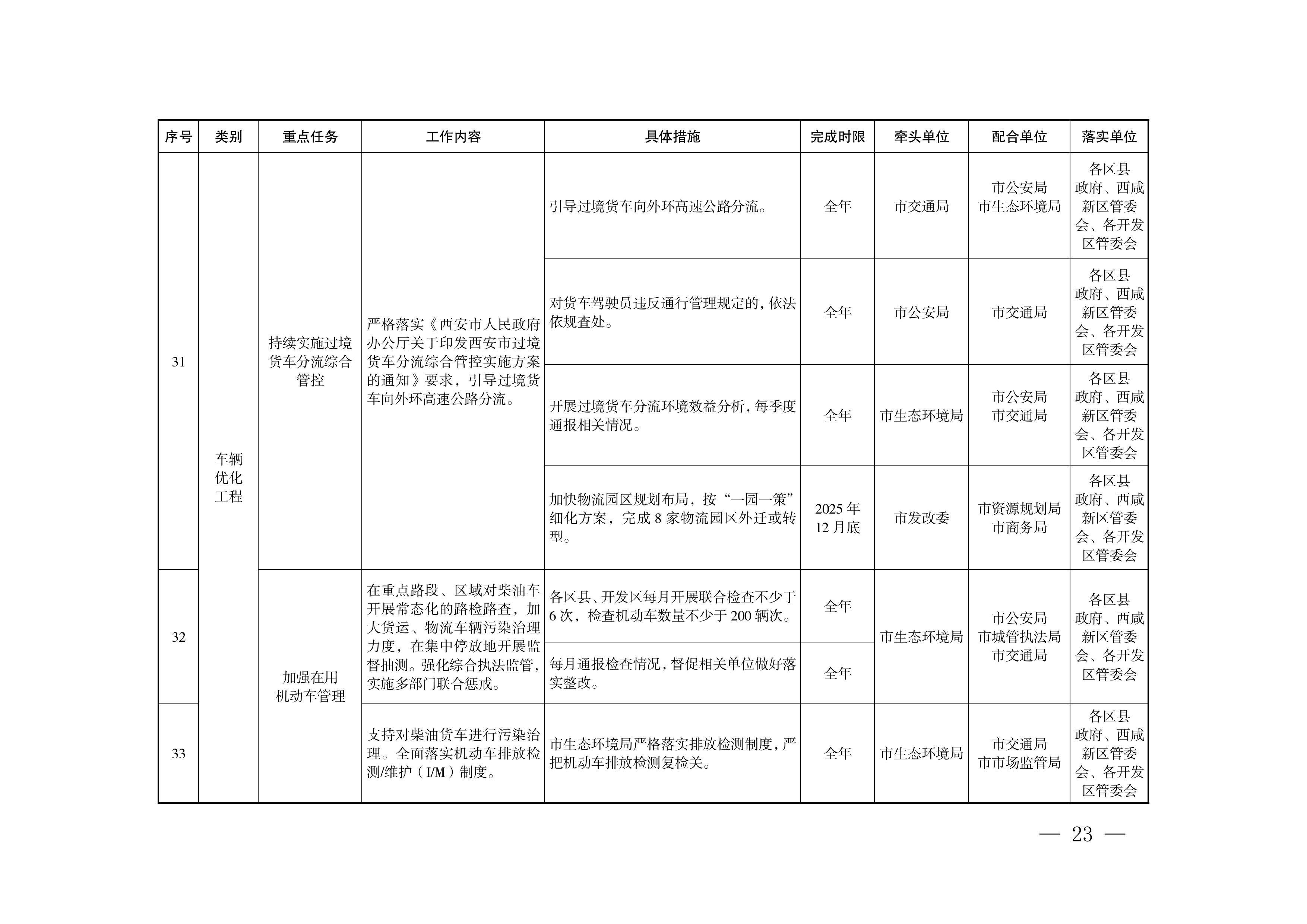 (10)持续实施过境货车分流综合管控。(市交通局牵头,市公安局、市生态环境局配合)