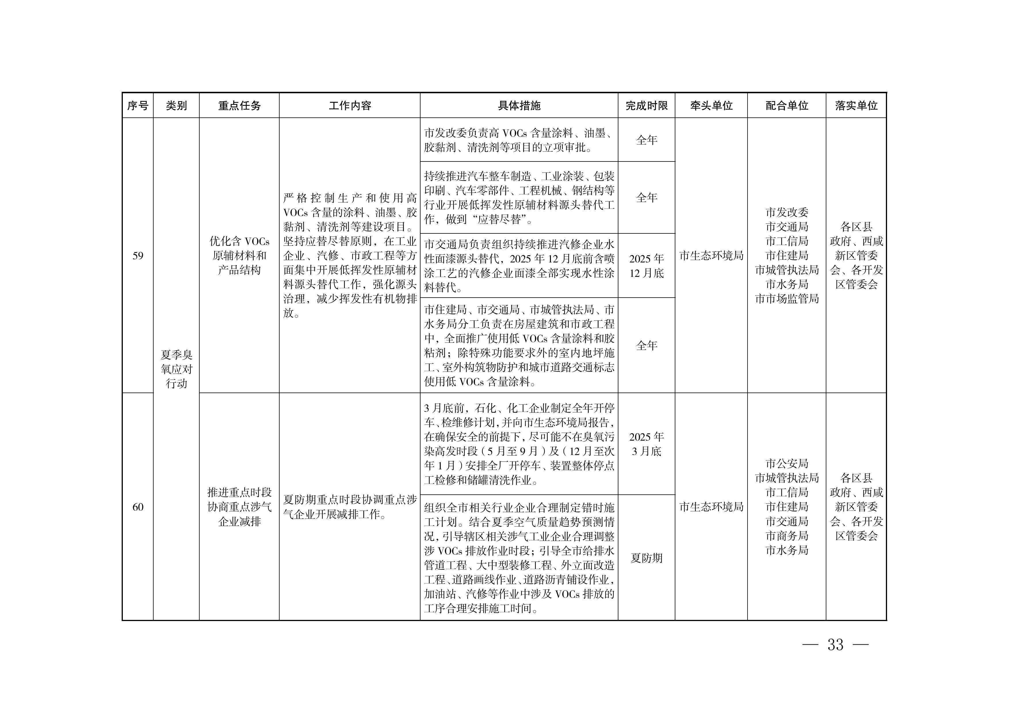 (5)夏防期重点时段协调重点涉气企业开展减排工作。(市生态环境局牵头,市公安局、市城管执法局、市工信局、市住建局、市交通局、市商务局、市水务局配合)