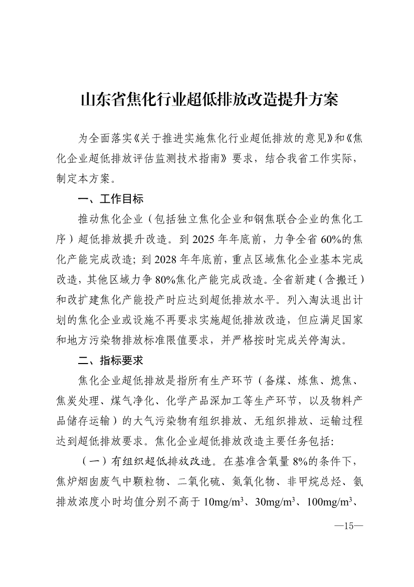 关于印发《山东省水泥行业超低排放改造提升方案》《山东省焦化行业超低排放改造提升方案》的通知
