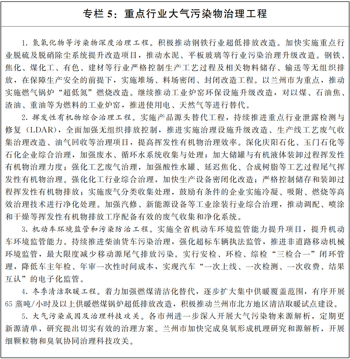 推动形成覆盖主要环境要素的地方性法规和政府规章,积极开展生态环境监测、固体废物、环境噪声、机动车排气等方面污染防治立法调研,推动《甘肃省固体废物污染防治条例》《甘肃省实施〈中华人民共和国环境噪声污染防治法〉办法》等相关地方性法规和政府规章出台。鼓励有立法权的市州在畜禽养殖污染防治、河道垃圾清理、城市扬尘等环境治理领域开展立法。