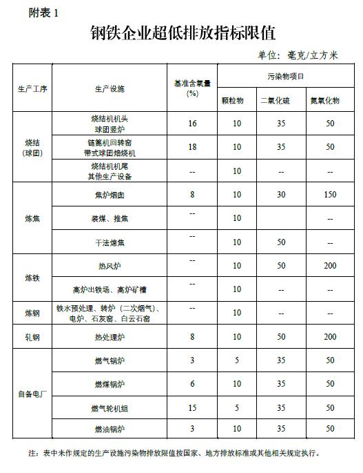 附件: 1.钢铁企业超低排放指标限值