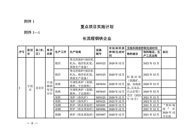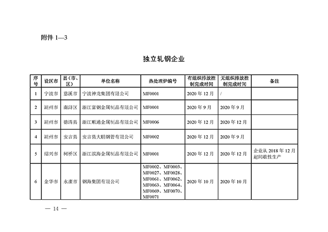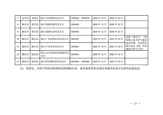 浙江省钢铁行业超低排放改造实施计划 (浙环函〔2019〕269号)