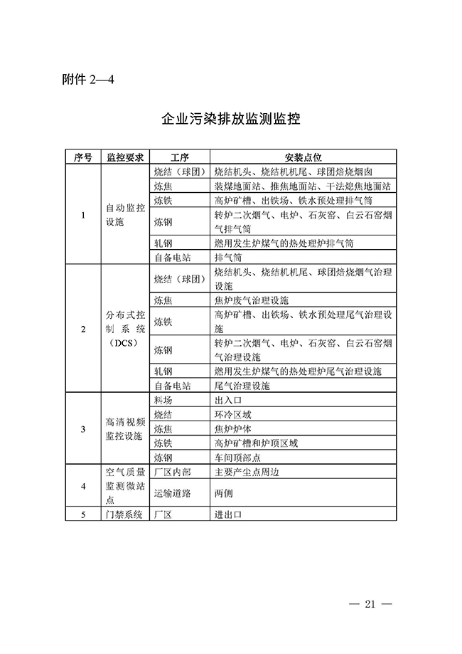 (三)加强企业污染排放监测监控。钢铁企业应依法全面加强污染排放自动监控设施建设,与当地生态环境及有关部门联网。企业应按照钢铁工业及炼焦化学工业自行监测技术指南要求,编制自行监测方案,开展自行监测,如实向社会公开监测信息。实施超低排放改造的长流程钢铁企业,应按要求全面加强自动监控、过程监控和视频监控设施建设,重点污染源污染治理设施应安装分布式控制系统(DCS),重点工序安装高清视频监控设施,关键点位布设空气质量监测微站点,并监控运输车辆进出厂区情况;短流程钢铁企业和独立轧钢企业可相应优化。具体见附件2—4。
